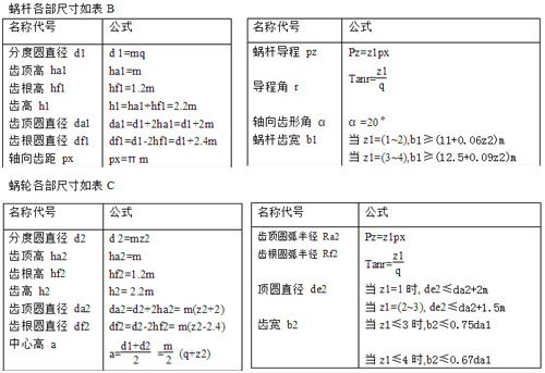 蝸輪蝸桿主要參數(shù)有:模數(shù)(m)、蝸桿分度圓直徑(d1)、導(dǎo)程角(r)、中心距(a)、蝸桿頭數(shù)(或線數(shù)z1)、蝸輪齒數(shù)(z2)等,根據(jù)上述參數(shù)可決定蝸桿與蝸輪的基本尺寸,其中z1、z2由傳動(dòng)要求選定。